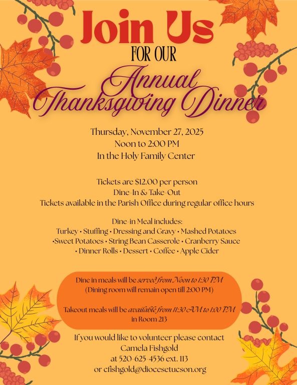 Our Lady of the Valley parish has been welcoming people from all backgrounds for over 50 years. As a member of the Parish Family, you will find many opportunities to learn, grow, give, and celebrate. To join the family and become an active member or member family, please visit the Parish Office or call us at 520-625-4536 ext. 101.